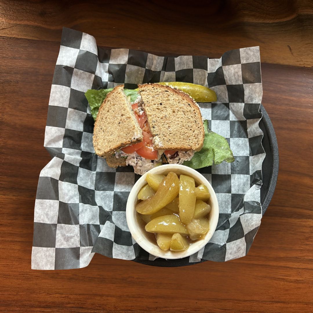Summer chicken salad sandwich with fried apples